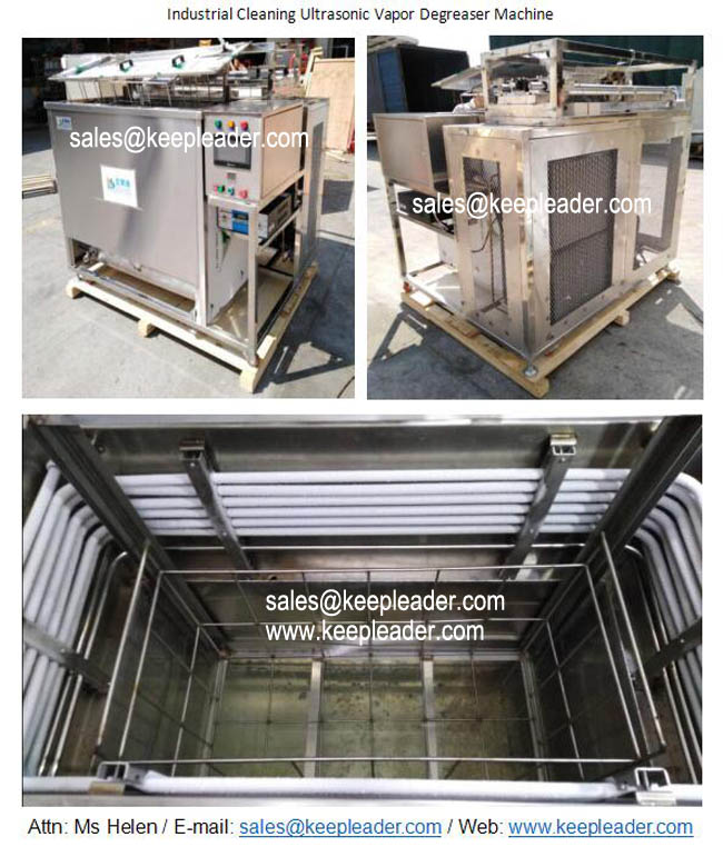 Industrial Cleaning Ultrasonic Vapor Degreaser Machine comes in a variety of configurations depending on customer application, we, keepleader can size a vapor degreaser to fit not only your parts, but also your cycle time and production requirements, with today’s solvents is essential to size the vapor degreaser properly to ensure maximum solvent recapture through distillation cycle chilling coils, also can equipped with auto lifting deice for auto processing and down agitation to improve insoluble particle displacement in cleaning performance